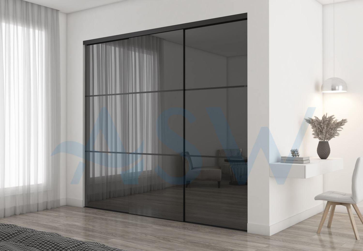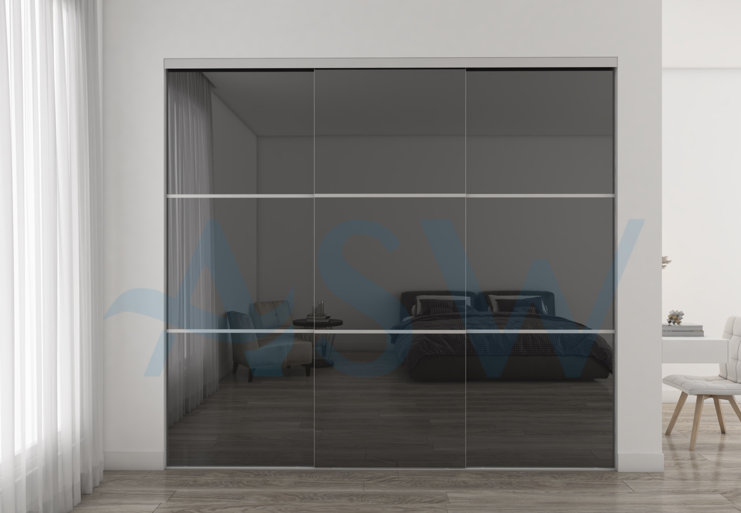 See how you can combine frameless sliding wardrobe doors and grey mirrors with horizontal strips with other elements from the ASW's catalog and explore cost and review info to make a weighted decision.