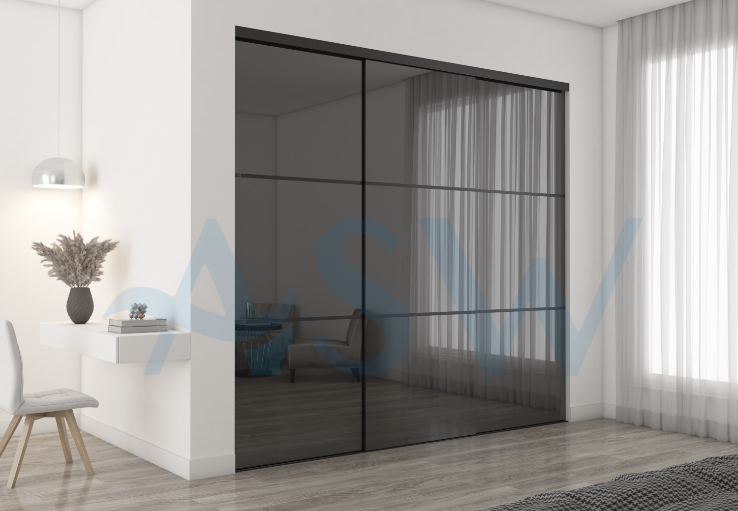 Crafted to maximize both form and function, these frameless sliding doors offer easy movement and stability, ideal for compact rooms where space optimization is key. The slim profile of the aluminum sliding wardrobe door track reinforces durability without the bulk of traditional frames, providing a seamless aesthetic that blends with any decor. The reflective properties of the grey mirror enhance natural light flow which creates a more spacious feel, while the subtle tint softens glare, making it suitable for any interior.