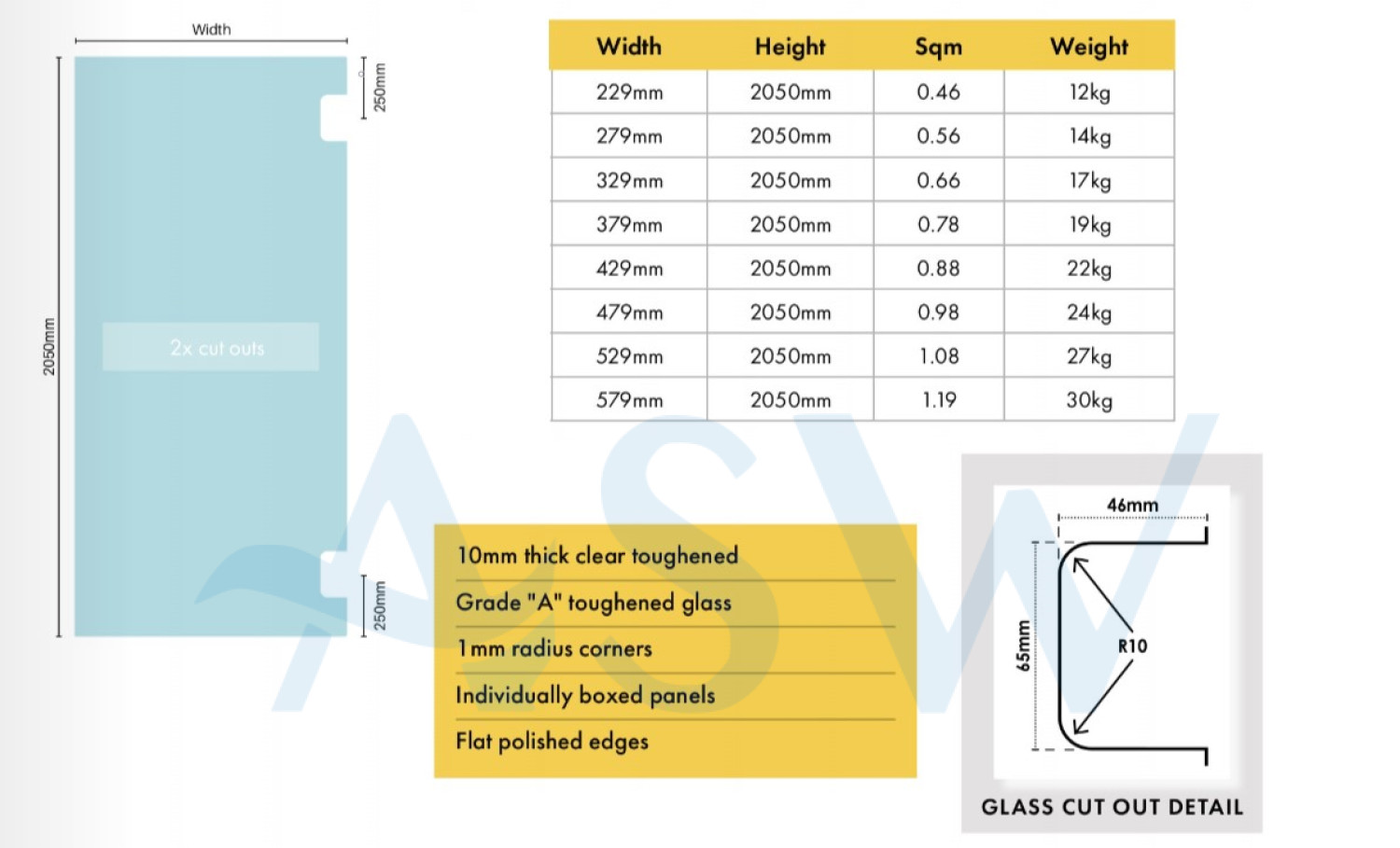 Frameless Shower Screen Hinge Panel 10mm Toughened Glass